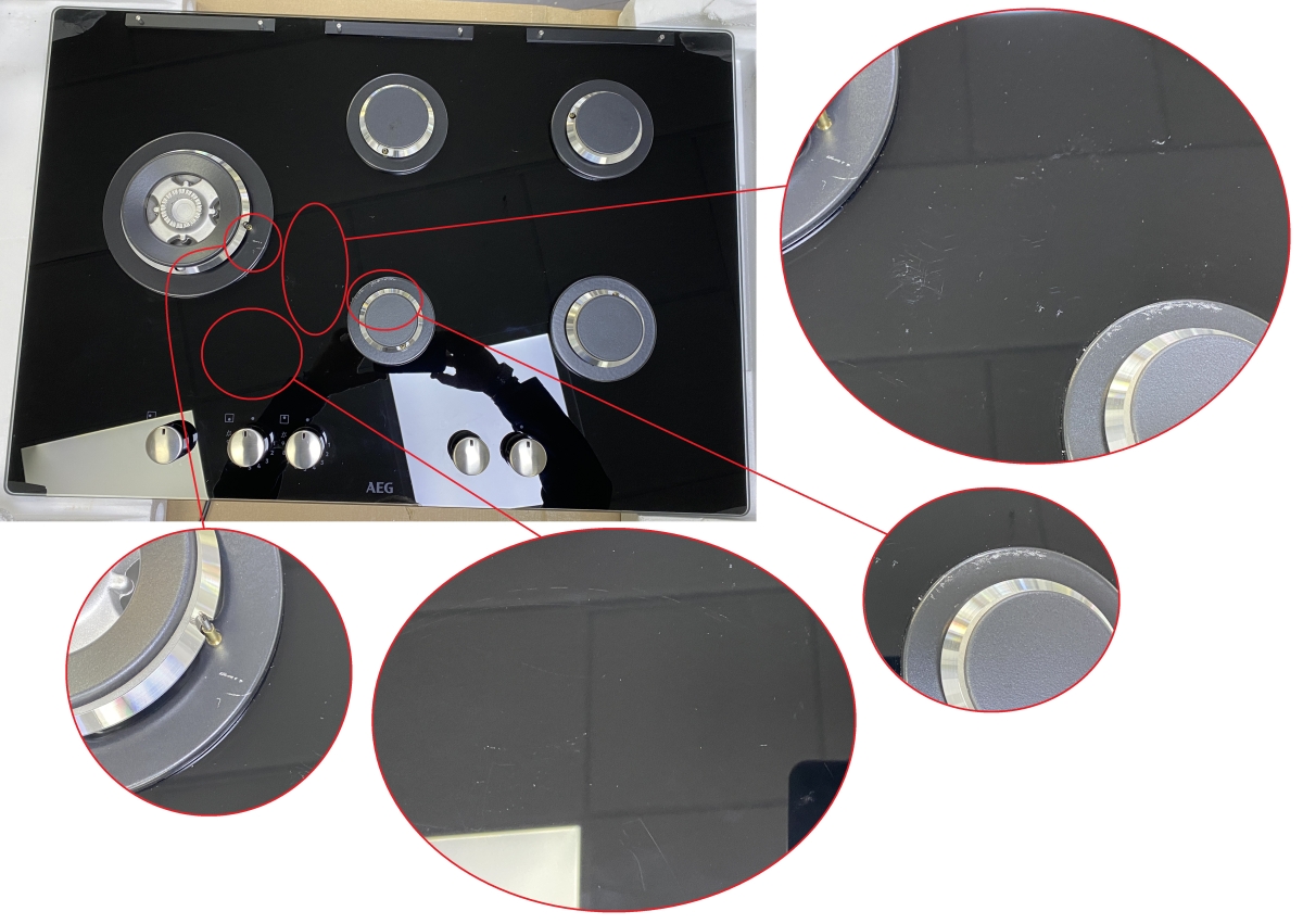 - Kratzer an 2 Düsen - mehrere Kratzer über das ganze Kochfeld