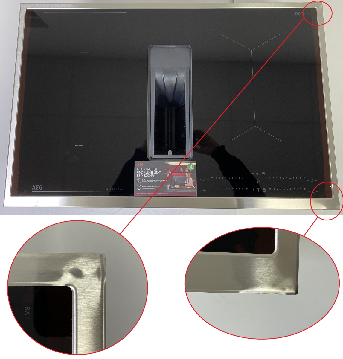 Kochfeldrahmen: - Dellen an der Ecke rechts oben - Dellen an der Ecke rechts unten