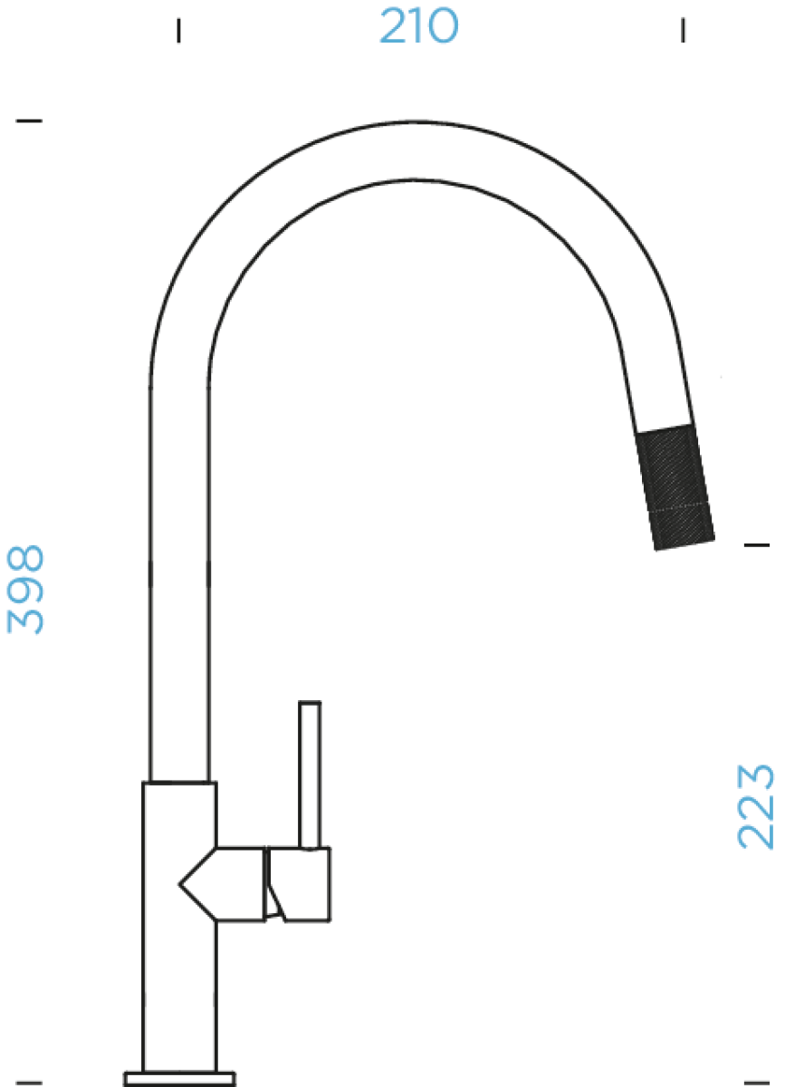 - Zugauslauf, Hochdruck, Strahl-Brausefunktion, Rückflussverhinderer, Schwenkbereich 360°