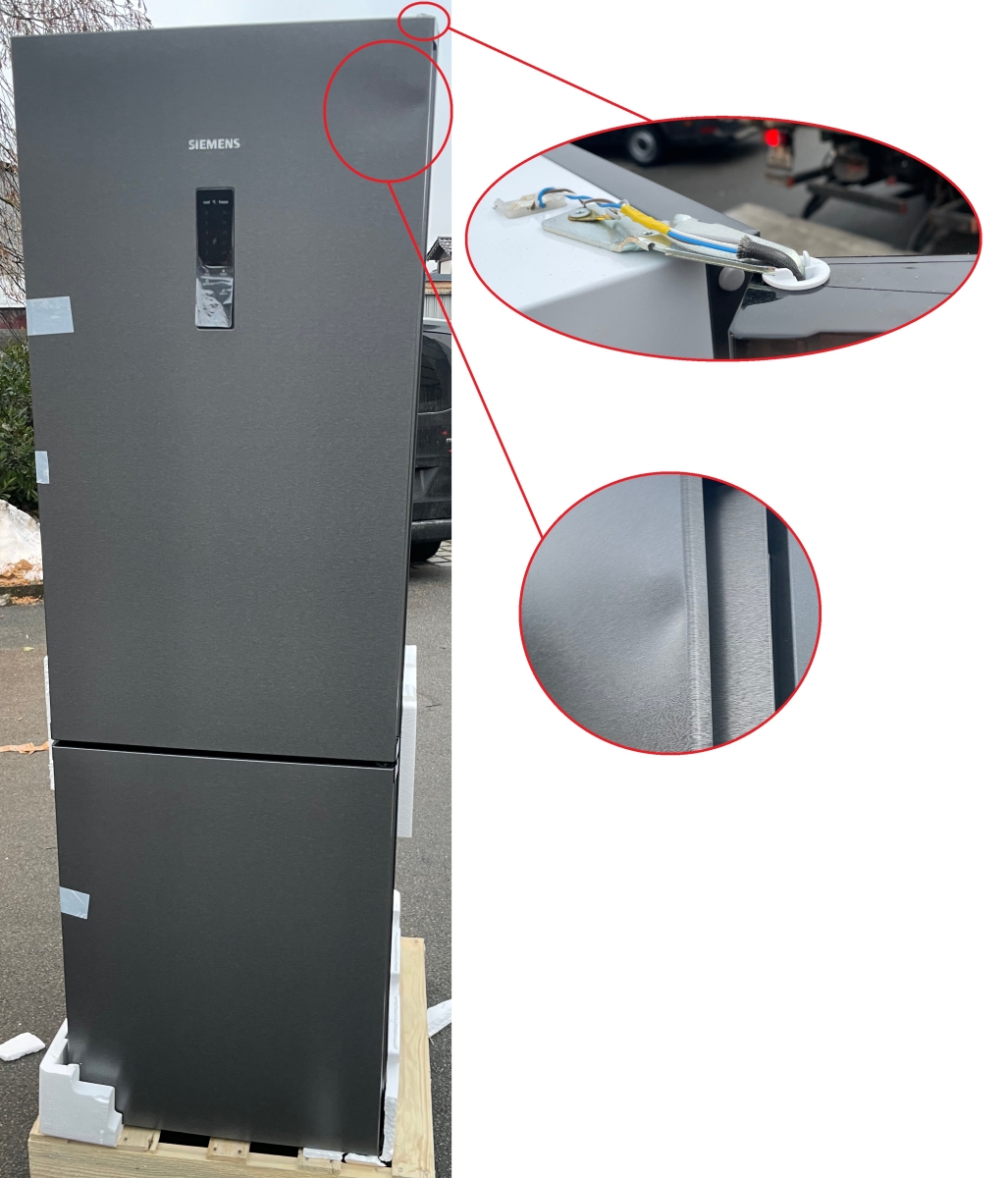 Front: - Delle an der oberen Tür oben rechts - Scharnierabdeckung oben fehlt