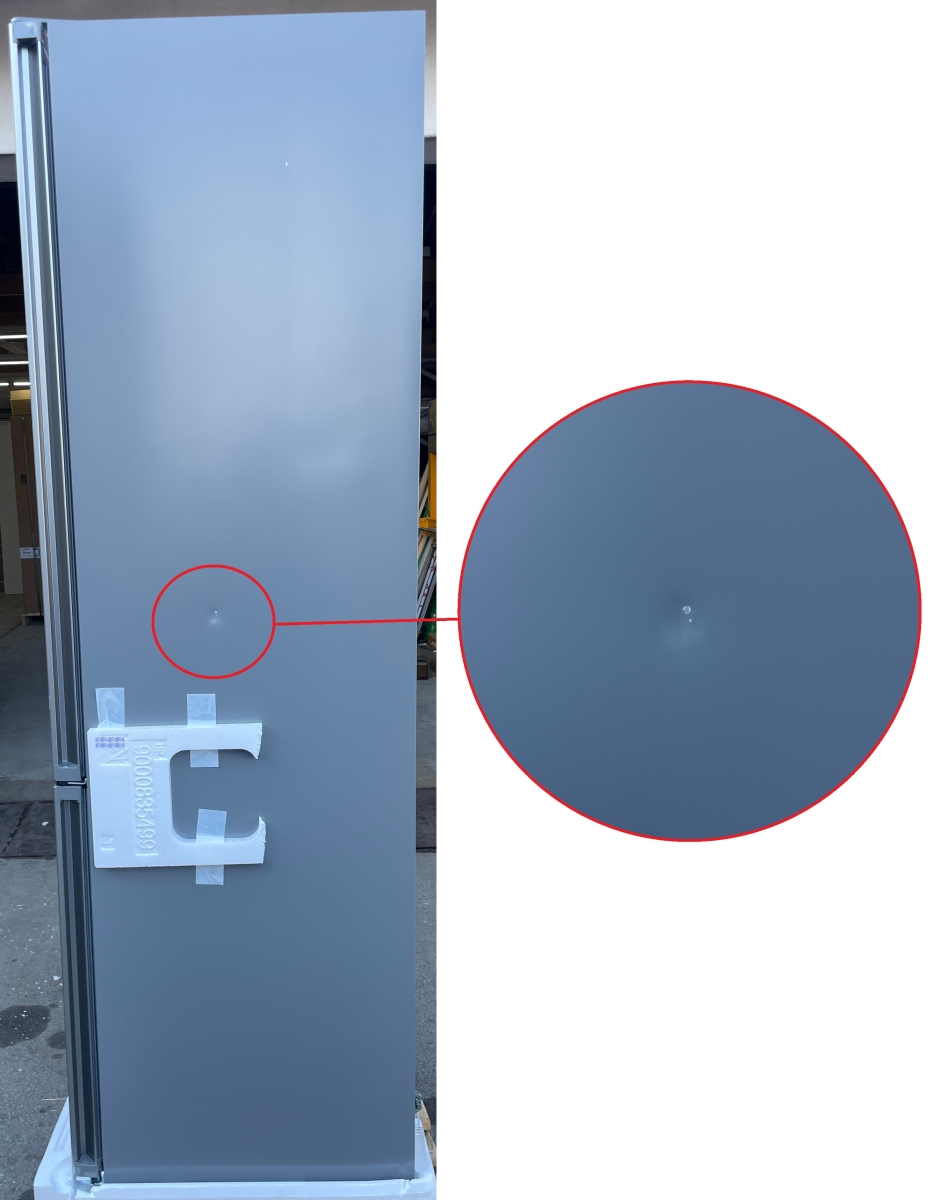 rechte Seitenwand: - Delle mit Lackabplatzer mittig