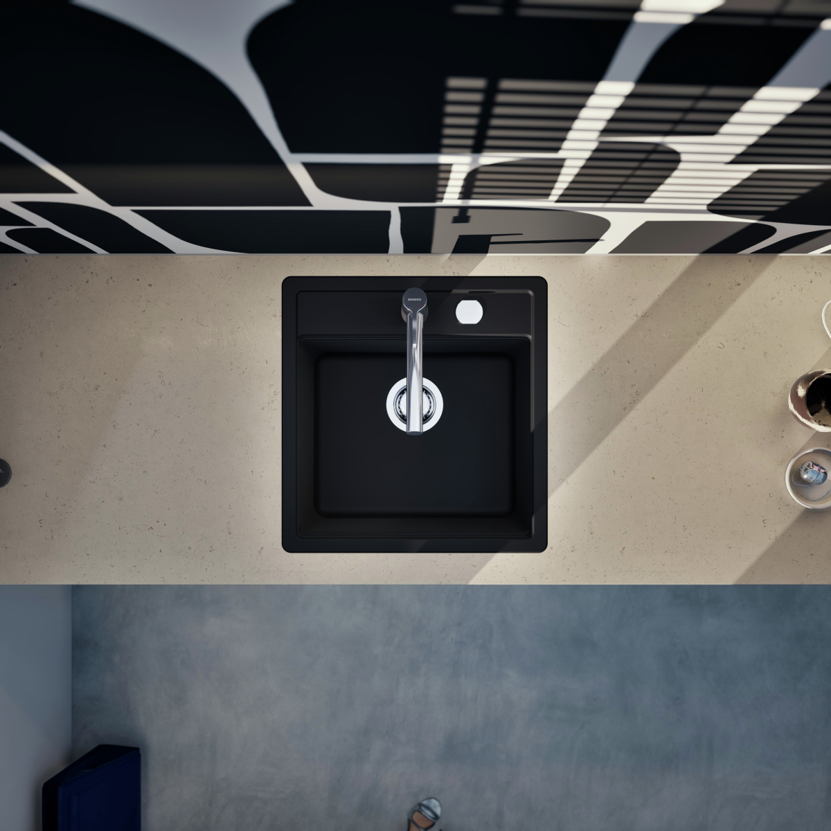 - CRISTADUR® Green Line, 1 Becken, ohne Abtropffläche, inklusive: MiniCare-Set, Holzschneidbrett, Ablaufgarnitur 3½'', Korbventil, Excenterbedienung, Chrom glänzend, Diamantbohrer SB Light