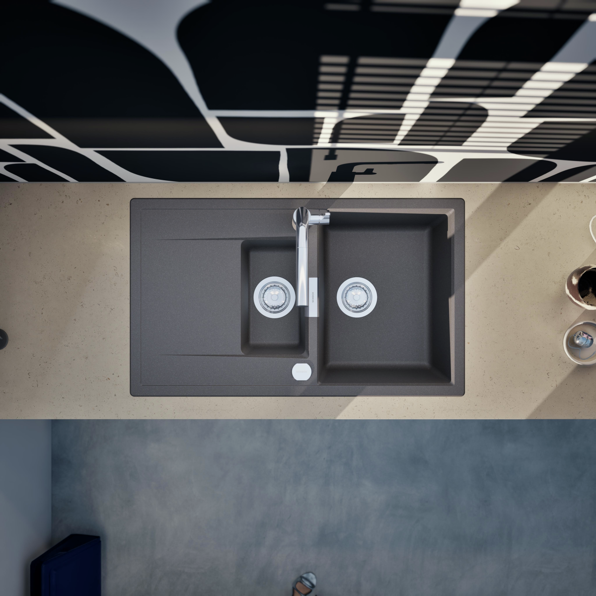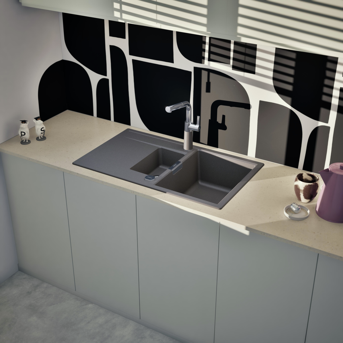 - Spülenform: Eineinhalbbeckenspüle mit Abtropffläche