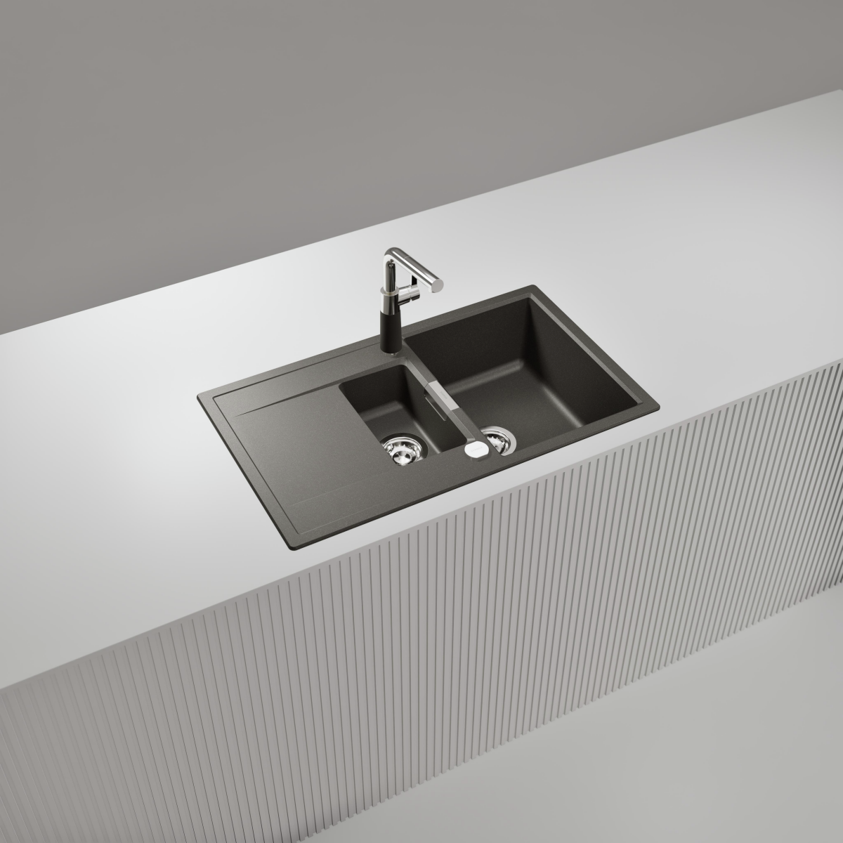 Die SCHOCK Granitspüle Mono D-150 in CRISTADUR® ist mit der verkürzten Abtropffläche und dem patentierten Überlauf ein Blickfang für kleinere Küchen.